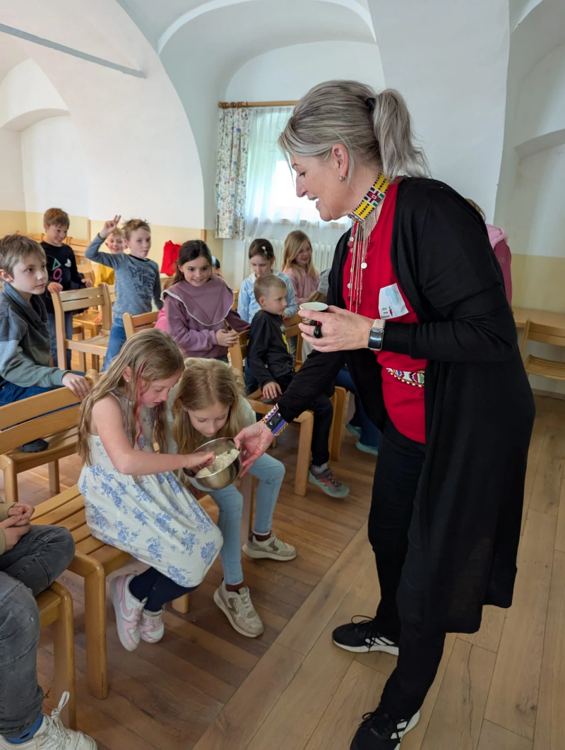 Im Rahmen der Vorbereitung für die Erstkommunion stellte ich 23 Kindern in der Pfarre Walding unser Projekt "offernewchances" vor. Um einen authentischen Eindruck zu vermitteln, gab es Ugali und Porridge zum Verkosten! ✨ Während dieser besonderen Zeit der Vorbereitung sammeln die Kinder Spenden für unser Porridgeprojekt, um unser Sozialprojekt in diesem Jahr zu unterstützen.