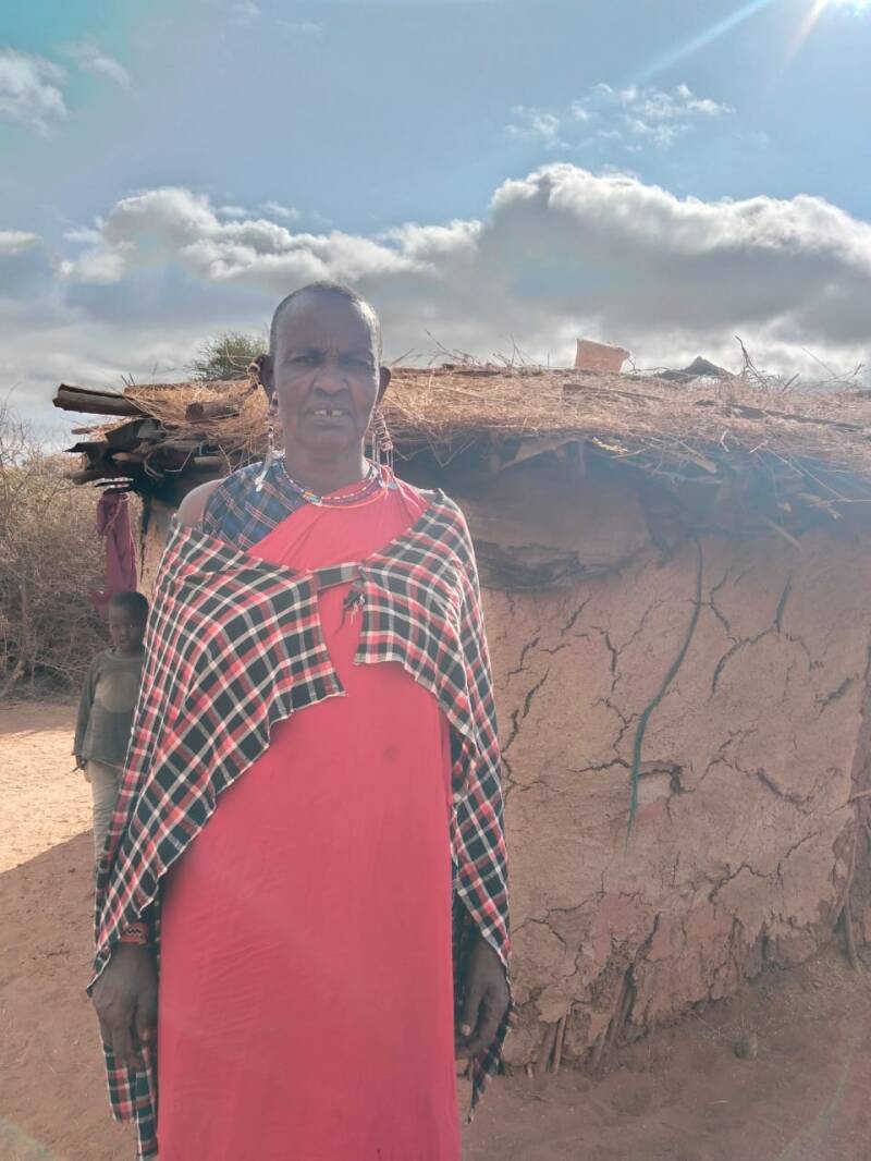 Nkeeyian Lemomo ist 42 Jahre alt. Ihr Ehemann ist bei einem Elefanten Angriff getötet worden. Nachbarn unterstützen sie bei den täglichen Arbeiten.